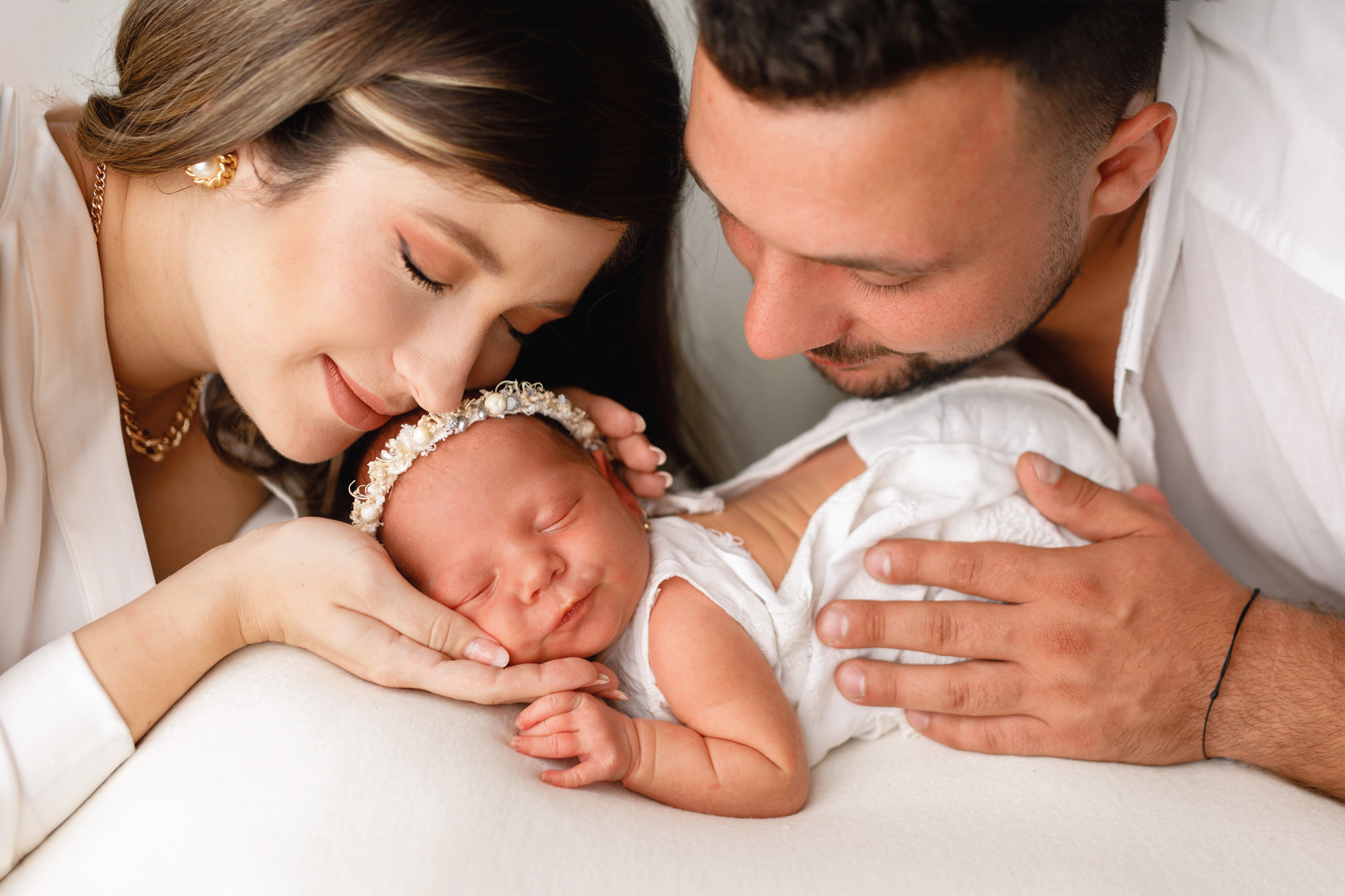 • Este o sedinta foto dedicata noului venit impreuna cu familia lui. Sedinta foto are loc in studio, unde sunt toate conditiile necesare atat pentru bebe, cat si pentru parinti. Va pun la dispozitie accesorii lucrate special pentru bebelusi. Atentia este axata pe cadrele de familie, cadre cu fiecare dintre parinti, cadre individuale, cu nou nascutul in pozitii specifice perioadei si detalii (gene, buze, degetele, etc). Programarea se face din timpul sarcinii, iar data exacta o stabilim la 1-2 zile dupa nastere. Pachetul contine 30 de fotografii.